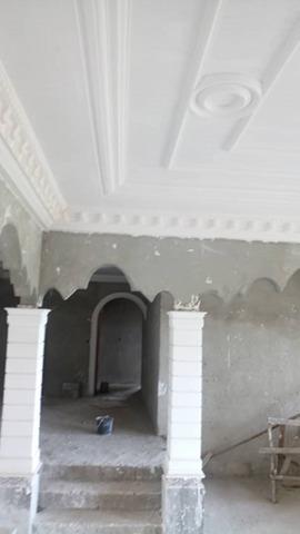 5 Bed rooms, 2 living room, an office, a modern kitchen, laundry room, store room, kids study room, dinny section. There is also a boys quarters of an Appartment of 2rooms, living room, kitchen and toilet. The house needs finishing.