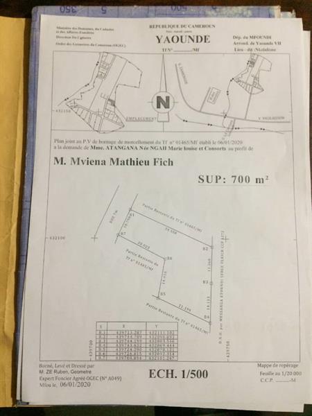 Terrain résidentiel titré à vendre Yaoundé 7 après nkolbisson lieu dit nouveau quartier Bastos 500 m² tel +237 695320810
