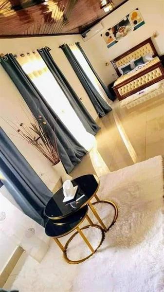 4 chambres (y compris la grande suite parentale), 5 douches, 3 salons, 1 salle à manger ,cuisine. Le tout avec clim, eau chaude, wifi, gardien parking espace vert, forage.